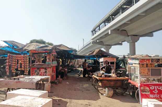Located next to the Sikanderpur Metro Station, one must either take public transport or the auto rickshaw to access the area. Hence, the space is easily missed. It is supposedly a blind spot, a manufactured error: a narrow rarely used strip tucked amidst private buildings, state roads and the metro. Without strong formal claims by developers (because it is cut off), or from the management of public infrastructure, the site (still owned by the original village community) has been taken over by an informal market.